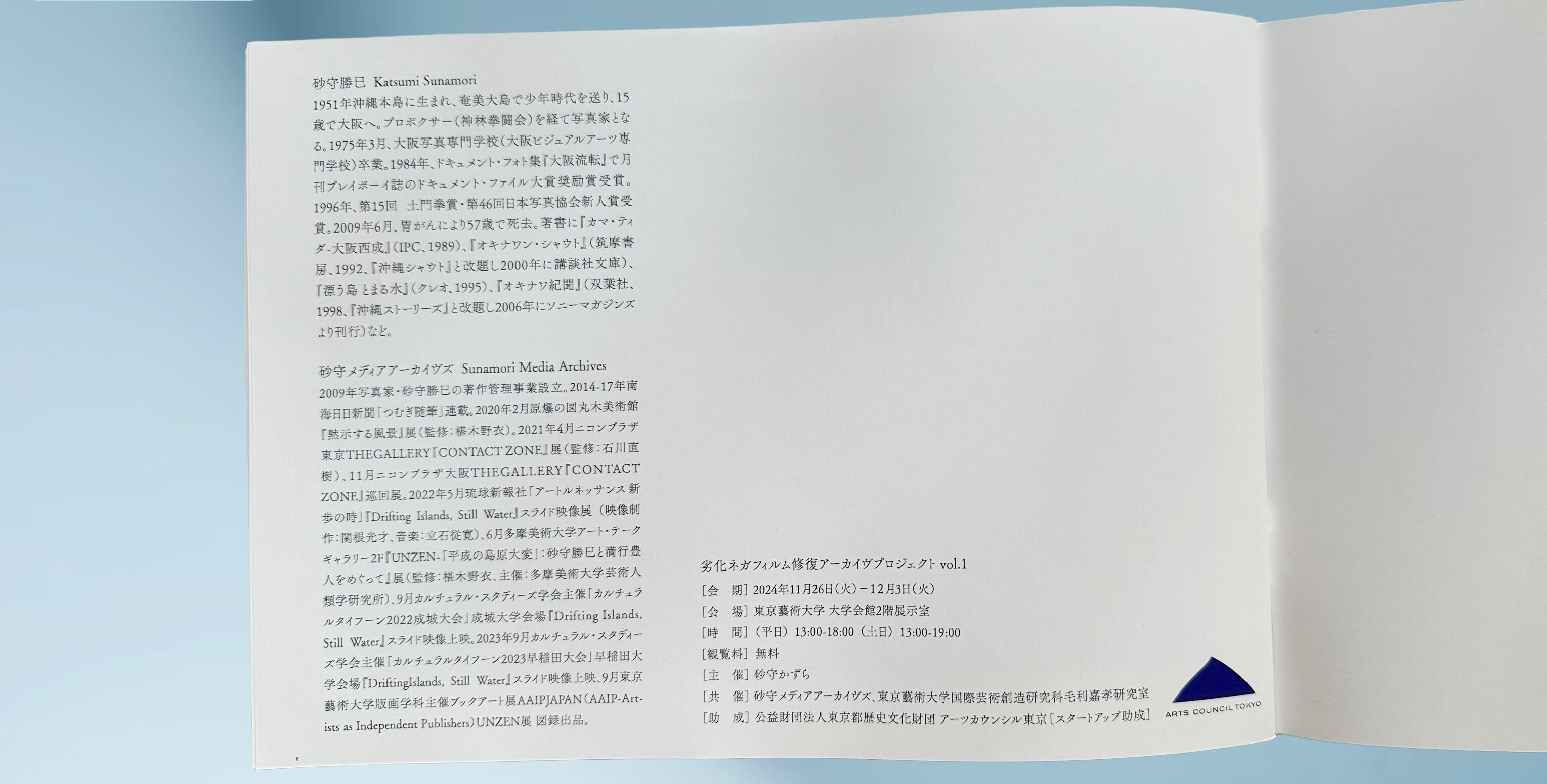 This catalogue was published in conjunction with an exhibition presenting the restoration process of deteriorated negatives taken by photographer Katsumi Sunamori in Nishinari, Osaka during the 1970s–80s.
